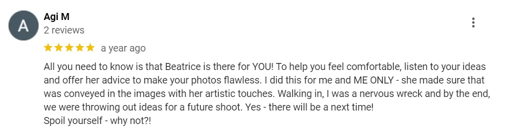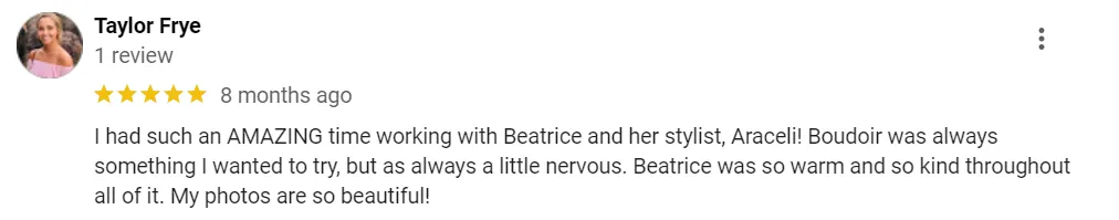 “I am so glad I did a boudoir photoshoot with Beatrice.